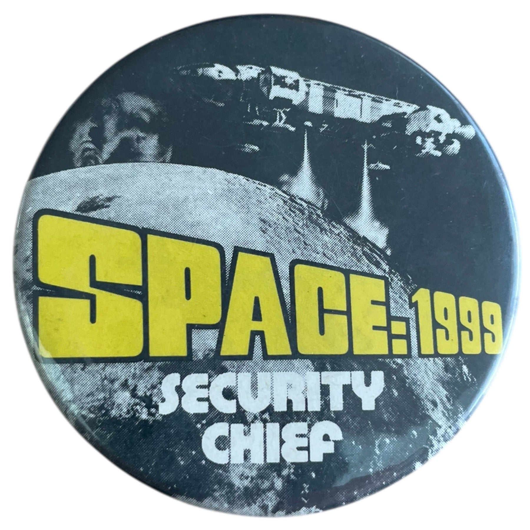 Vintage Badge A Minit 1985 Gerry Andersons Space 1999 - Security Chief 55mm Metal Pin Badge - Fantastic Condition