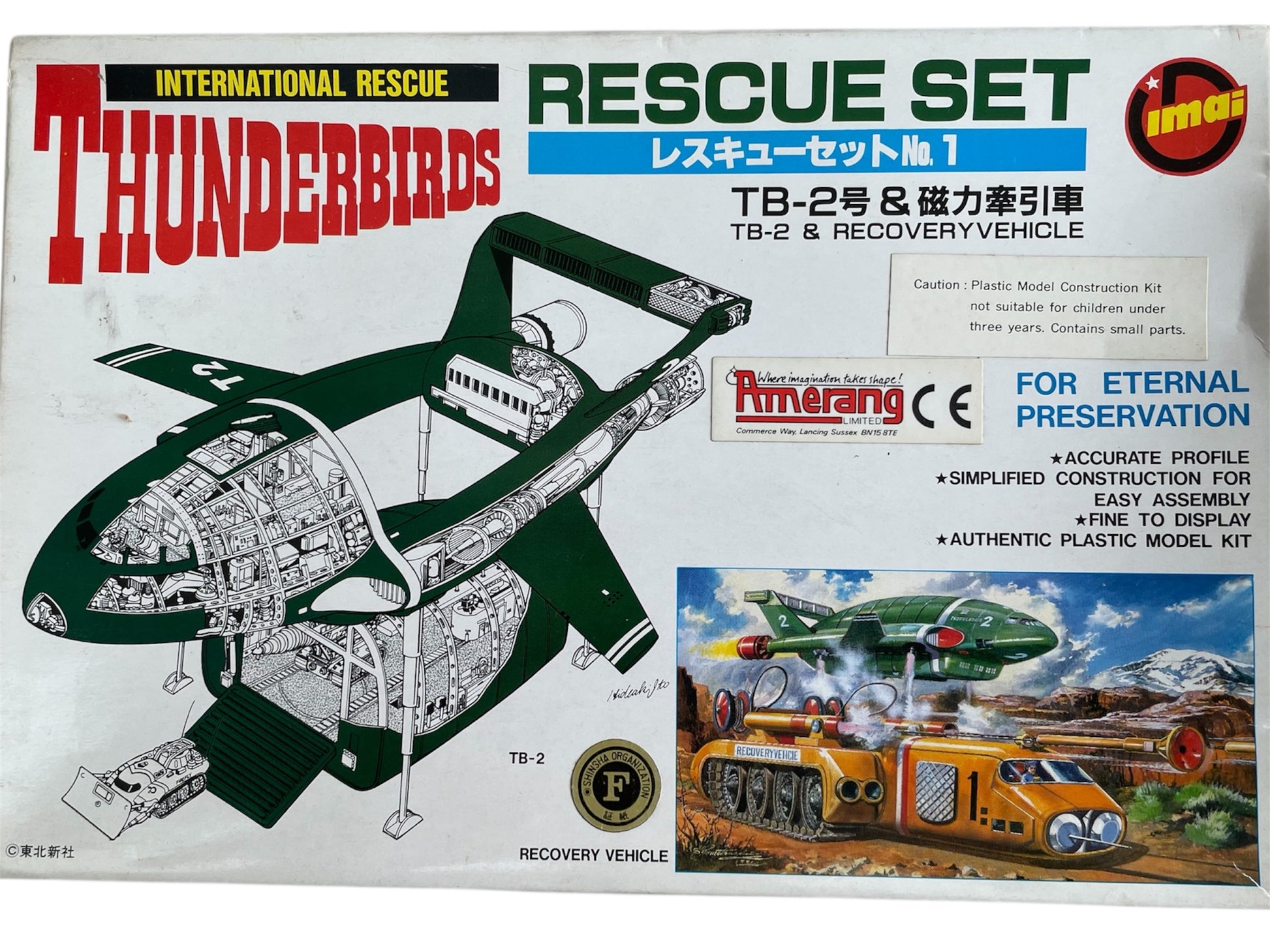 Vintage IMAI 1980's Gerry Andersons Thunderbirds Rescue Set Featuring Thunderbird 2 and The Recovery Vehicle Colour Plastic Model Kit - Factory Sealed Shop Stock Room Find
