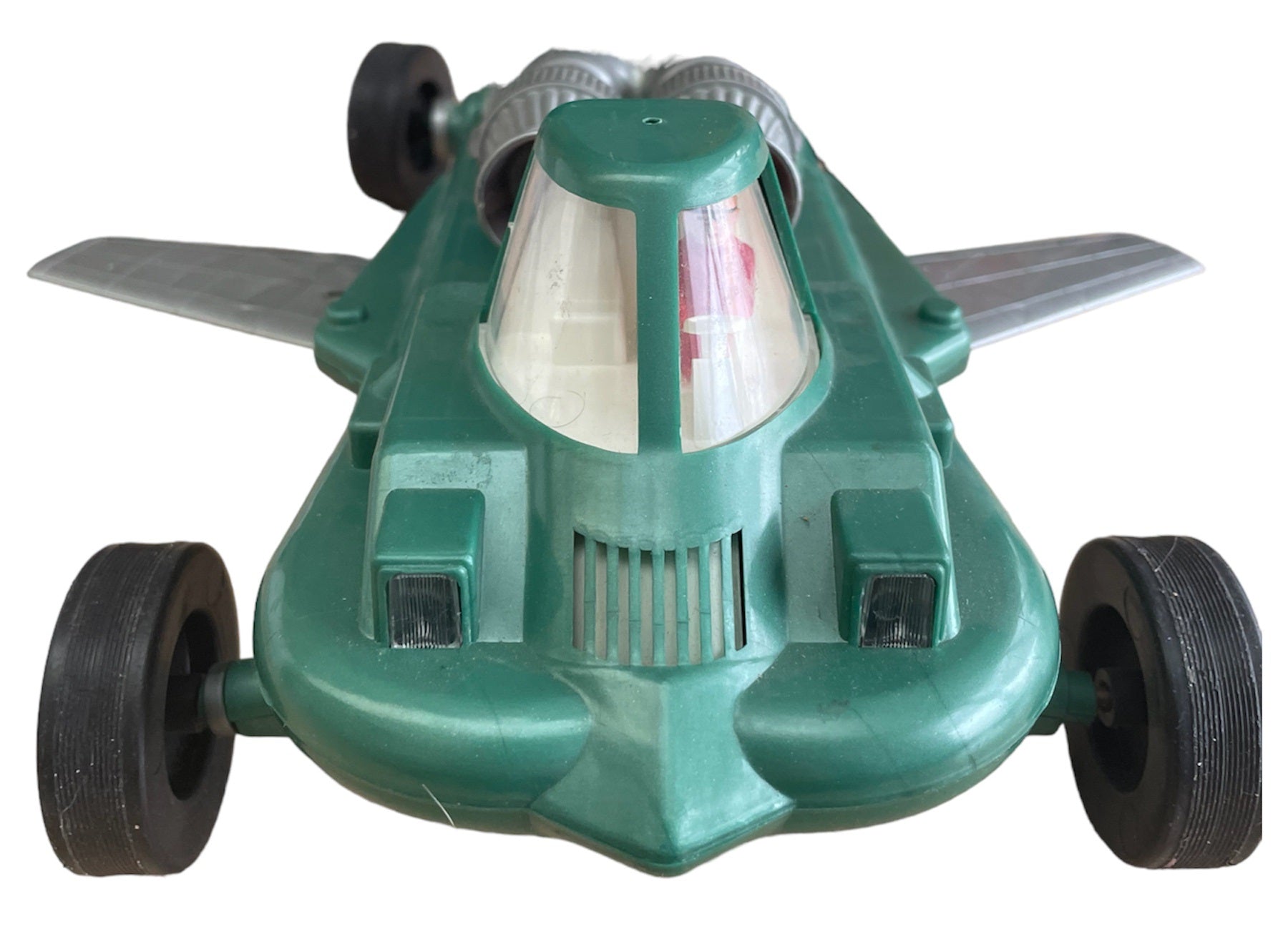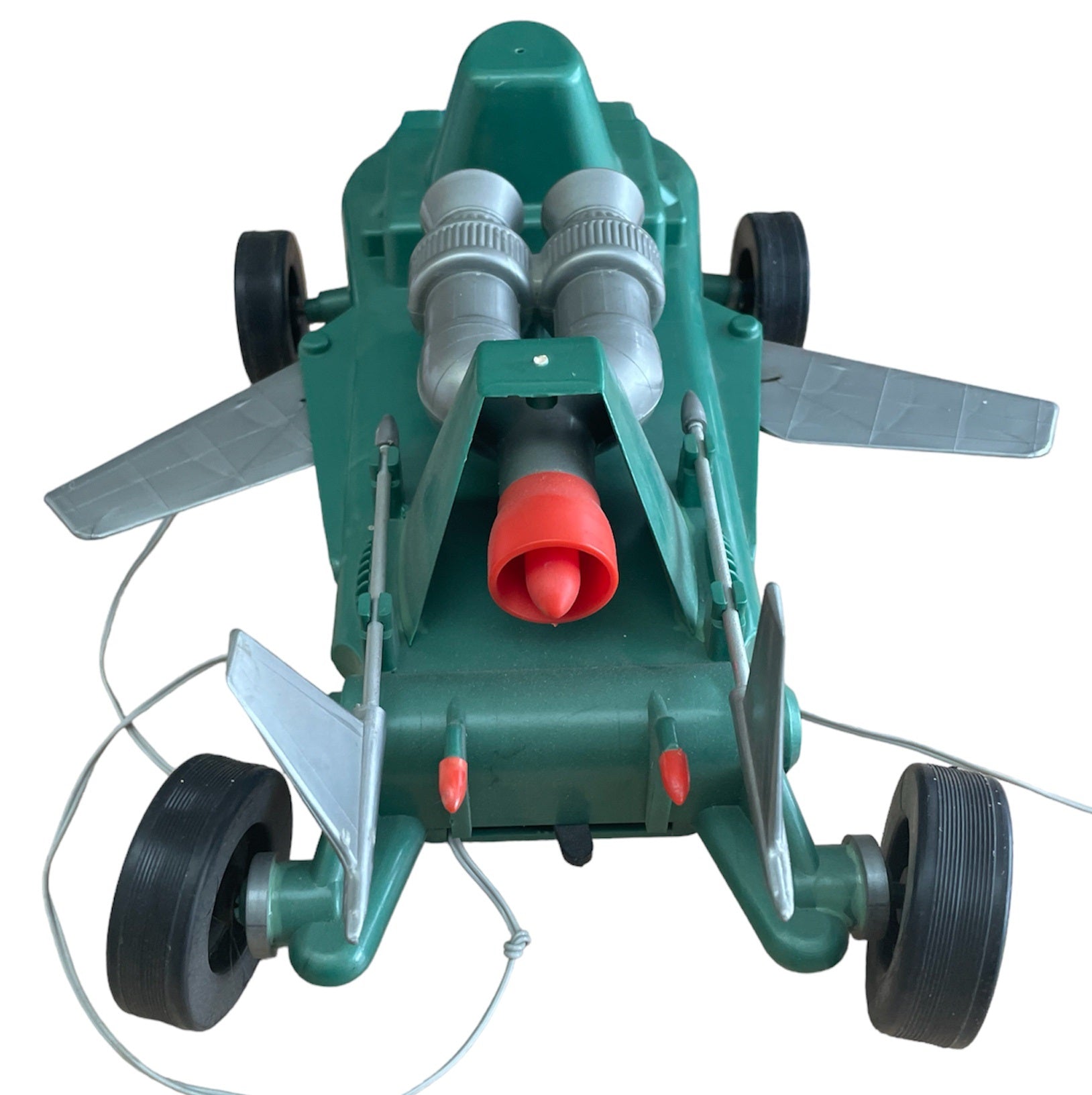 Vintage Century 21 Toys 1968 Gerry Anderson Joe 90 Remote Controlled - Mac's Flying Car Good Condition And Working - In The Original Box - Ultra Rare. Released by Century 21 Toys in 1968 as part of their series of Joe 90 toys and playsets. This Fantastic model of the amazing Mac's Car from the fantastic Joe 90 television show, is highly detailed and very accurate to the on screen version and measures approx 30cms long by 25cms wide by 13cms tall, it has a green plastic body with silver and red engines, with a white interior with a red Professor McClain figure behind the steering wheel. The vehicle has a battery operated remote control which is wired to the back of the car with features that include - Forward And Reverse Movement, Pre Set Rear Wheel Steering, Hand Operated Tail Fins, Automatic Wing Action and Real Headlights. Comes in the original box, with the original outer box sleeve. The item is in very good condition for its age, however it does have a few minor defects, the top bar is missing, as are the front two hub caps, but the rest of the model vehicle is all present and correct with a full working remote control in the shape of a telephone. Press the white button and the vehicle moves forward, and the front head lights light up, however the wings are a bit temperamental, some times they open, but most times the don't, but if you pull them out they will close automatically when the car is driving. Press the red button for the same functions, but moves backwards. A truly fantastic ultra rare item from one of the most popular Gerry Andersons supermarionation television shows from the 1960s. All orders received before 4.00pm Monday to Fridays are shipped the same day.