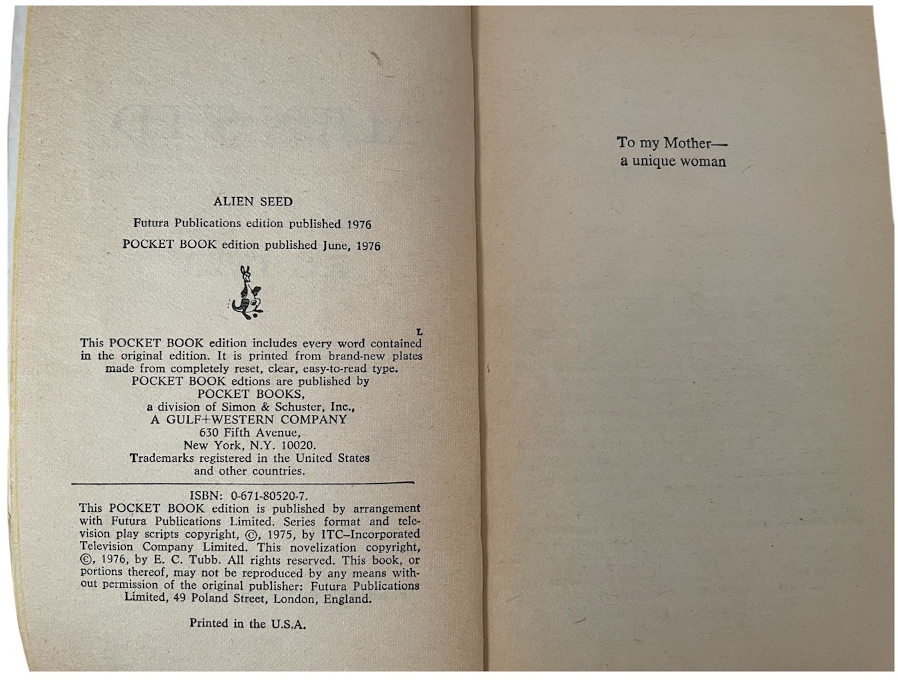 Vintage Pocket Books 1976 Gerry Andersons Space 1999 Paperback Book - Alien Seed By E.C. Tubb - Based On The TV Series - Very Good Condition