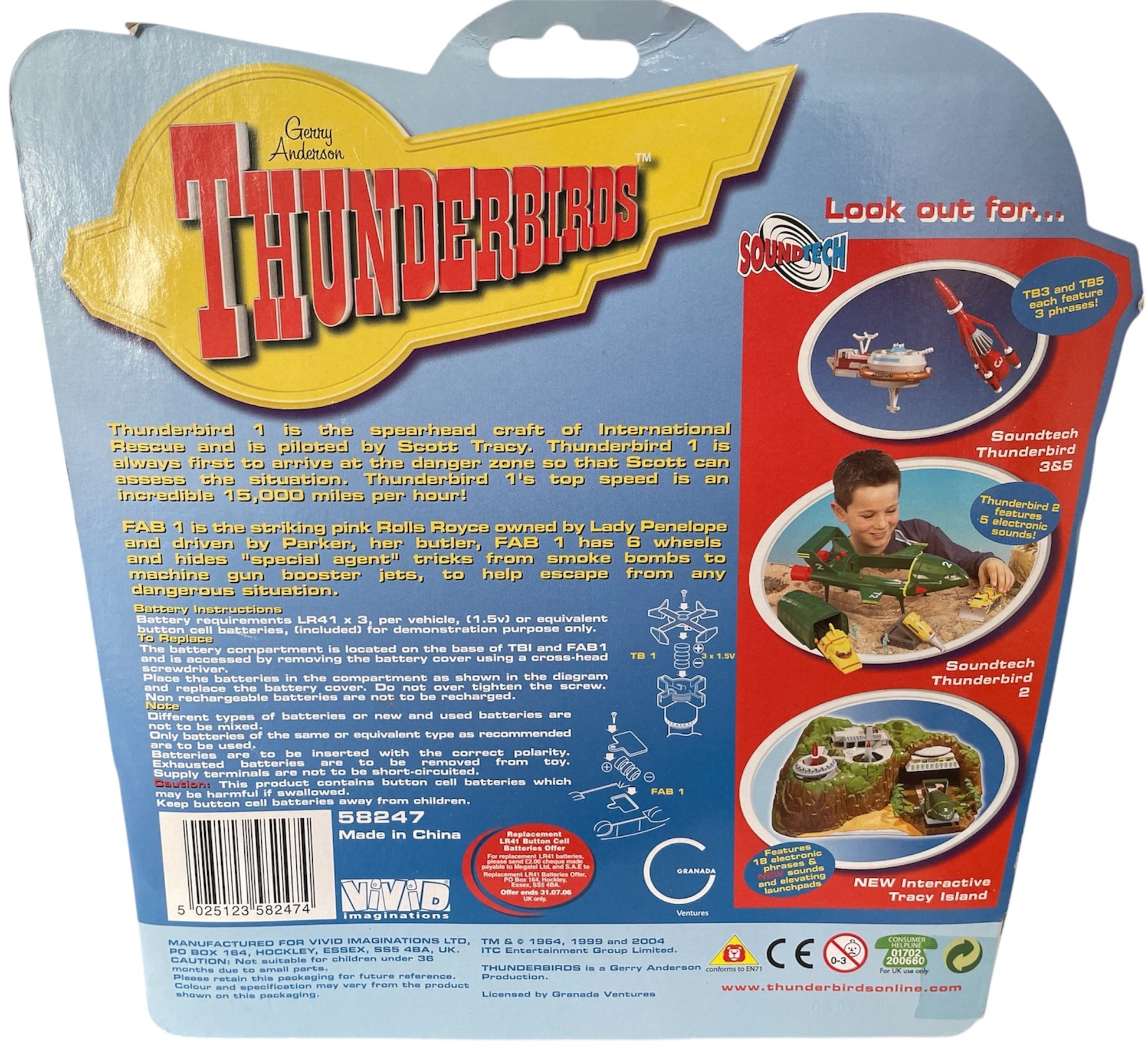 Vintage Vivids 2004 Gerry Andersons Thunderbirds 40th Anniversary Thunderbird 1 And FAB 1 Soundtech Model Vehicle Set With 3 Authentic Voices - Factory Sealed Shop Stock Room Find