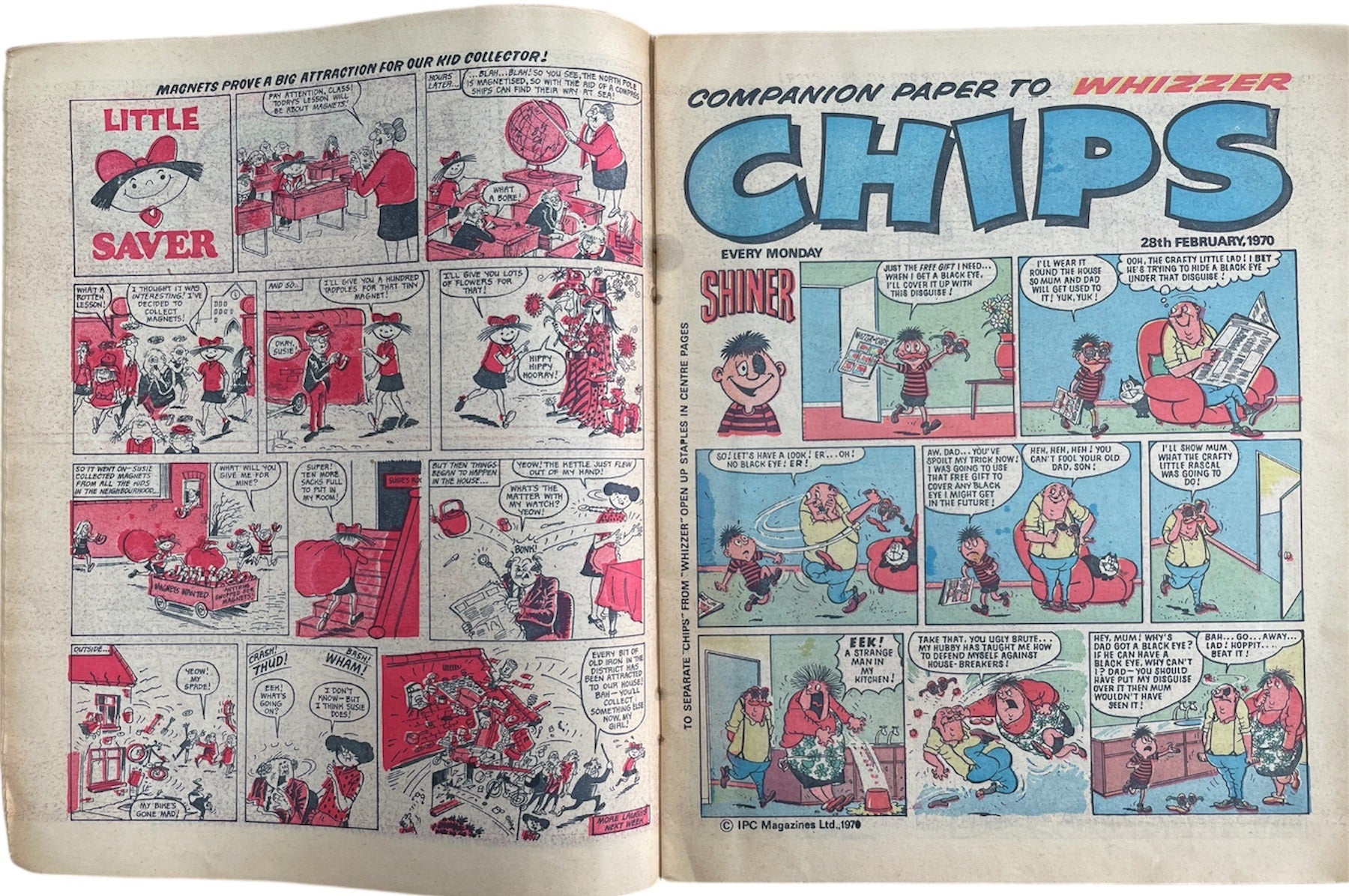 Vintage Whizzer And Chips Weekly Boys And Girls Comic - 28th February 1970 With Free Instant Disguise Kit Gift - Former Shop Stock